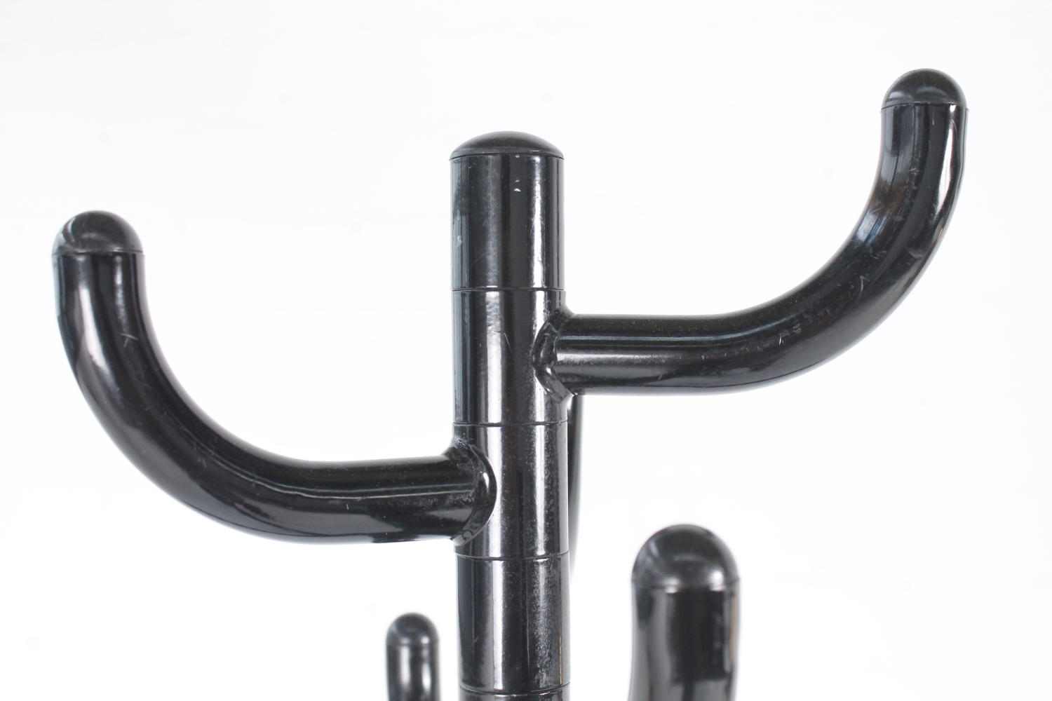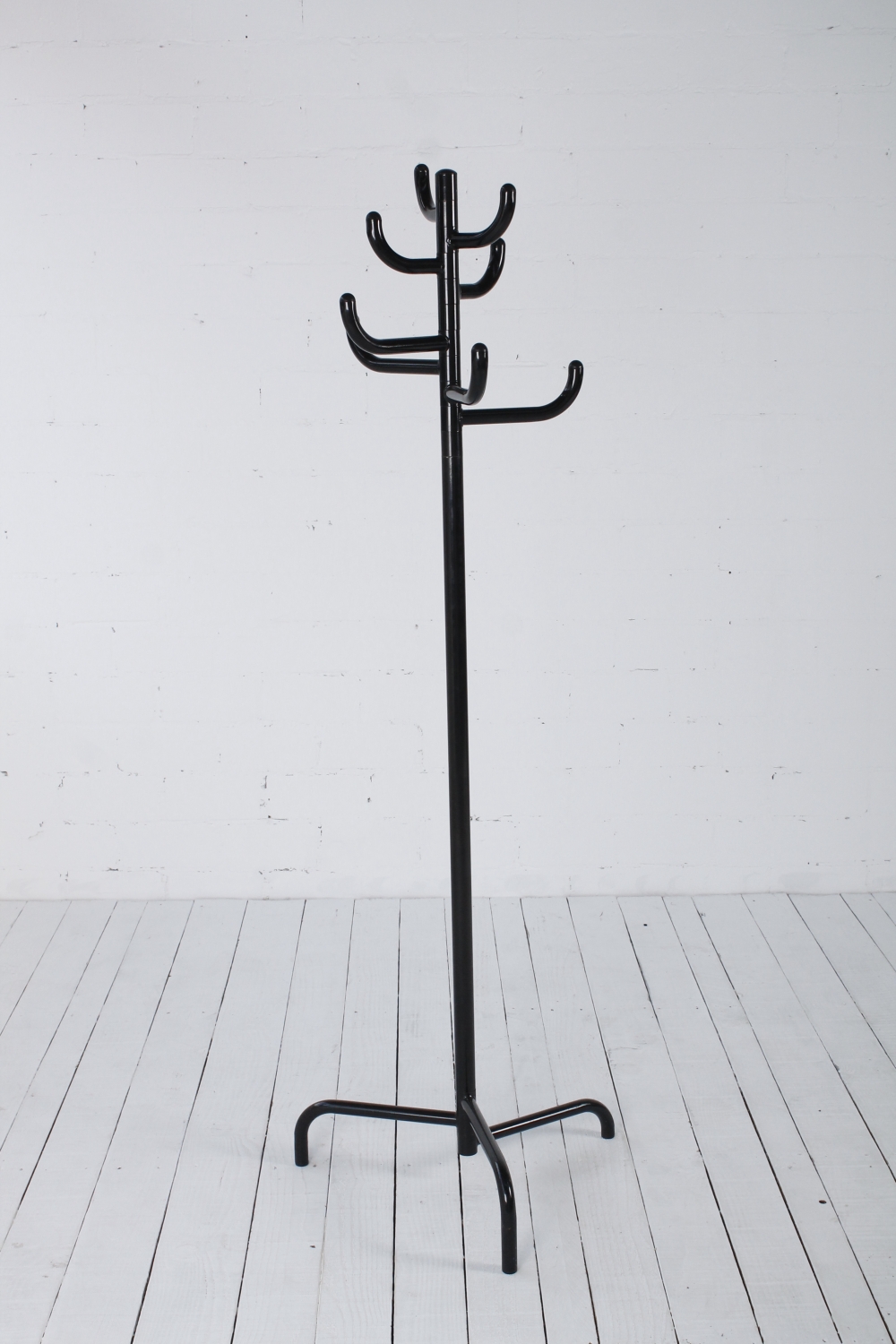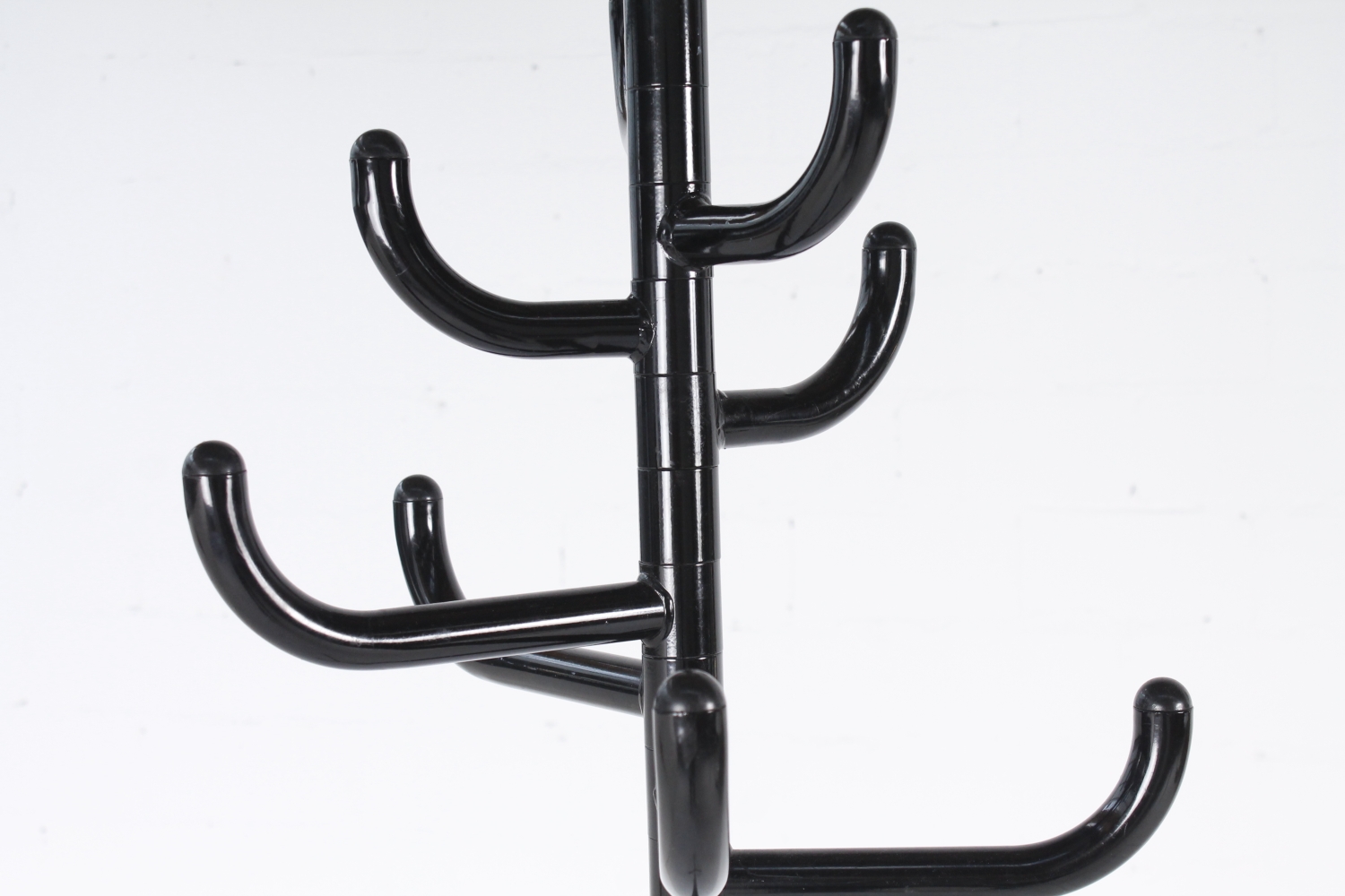 - BeschreibungPraktische Vintage Garderobe im Kaktuks-Look. Stännder und Haken sind aus schwarzem Kunststoff gefertigt, die einzelnen Haken lassen sich frei drehen.