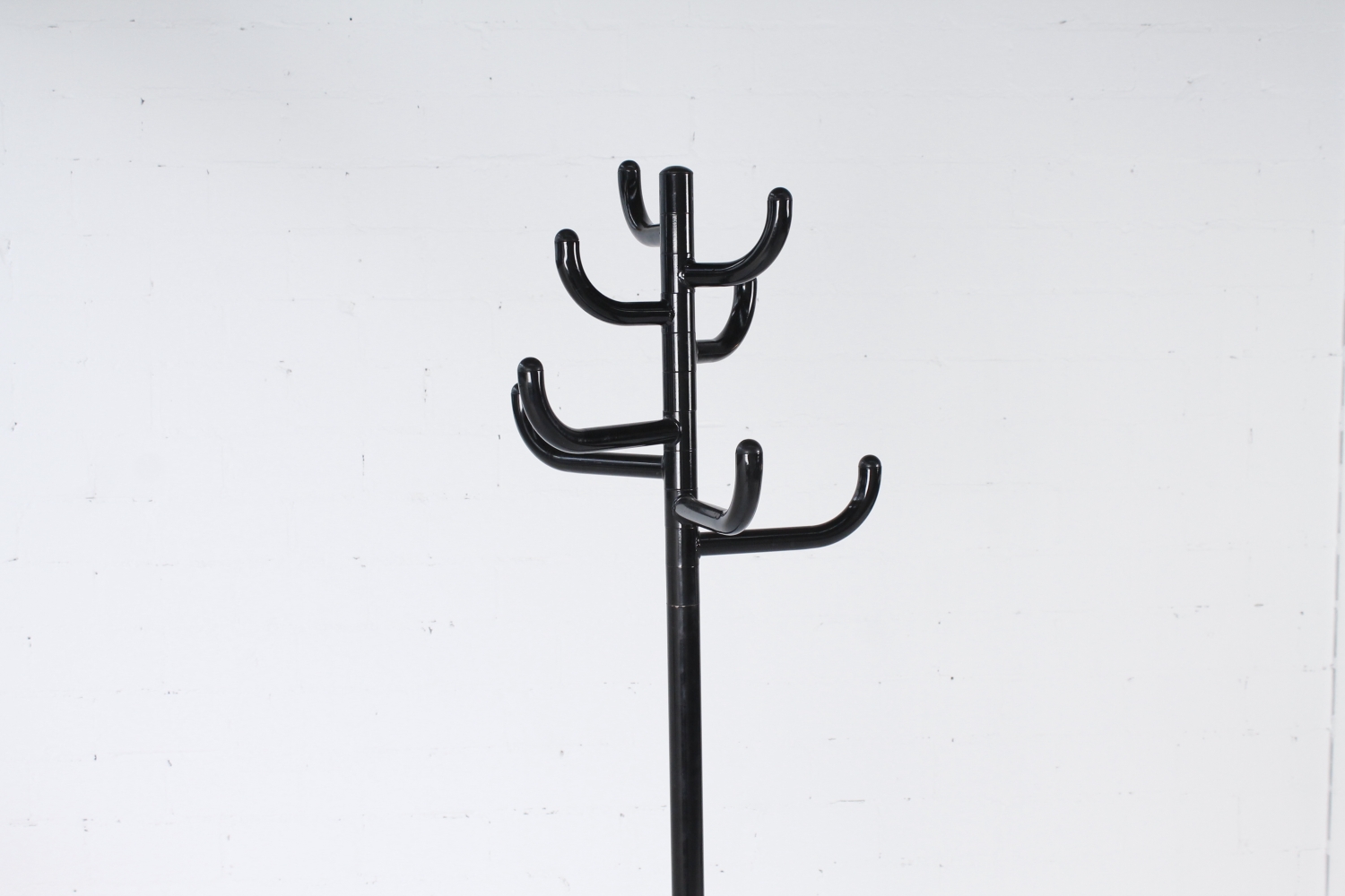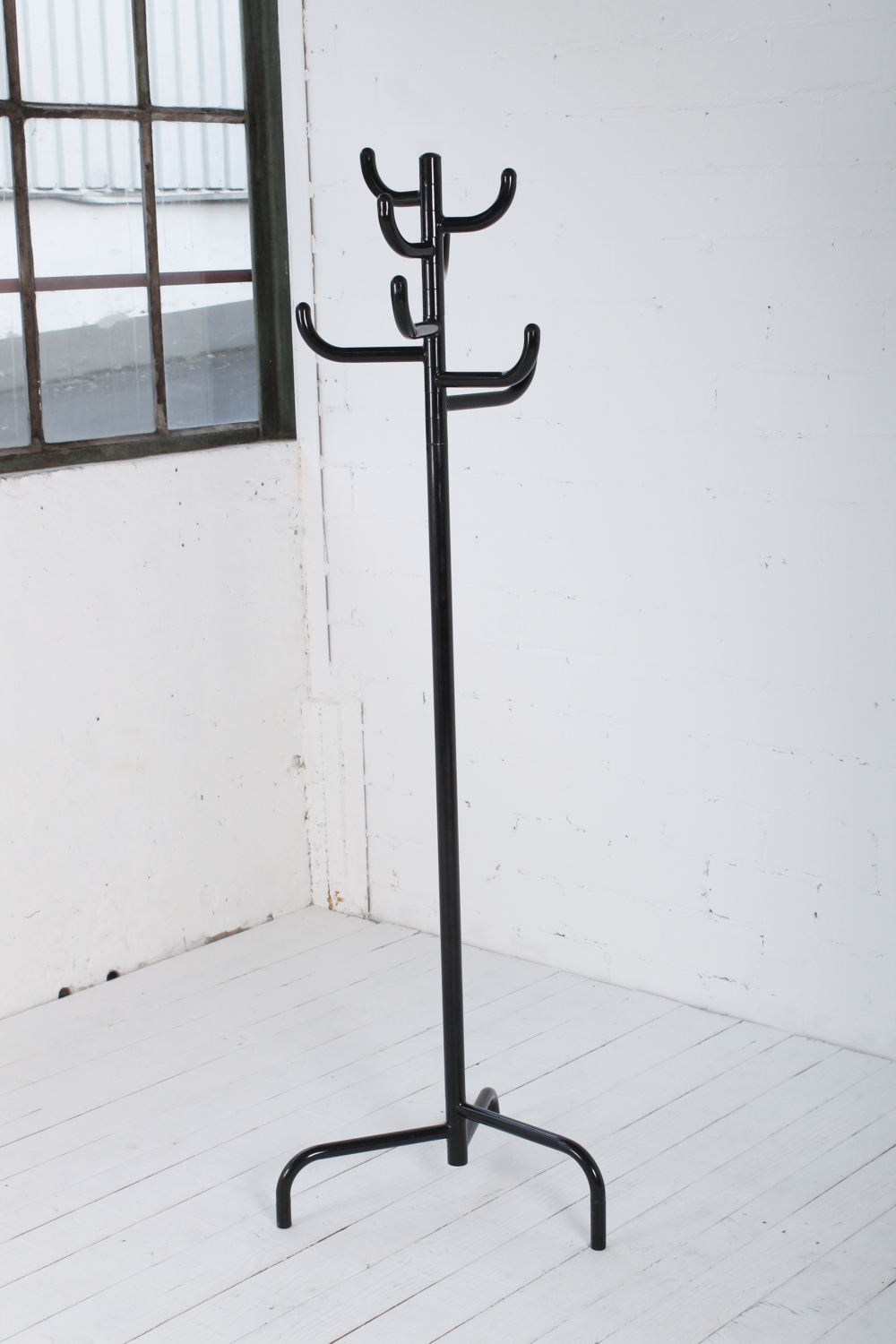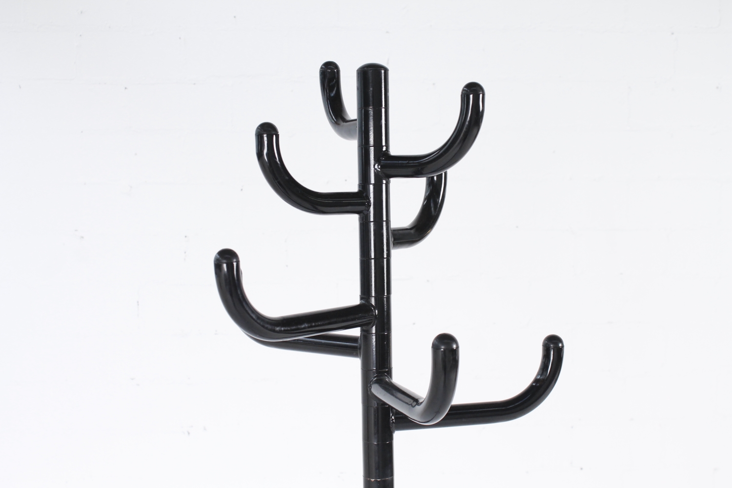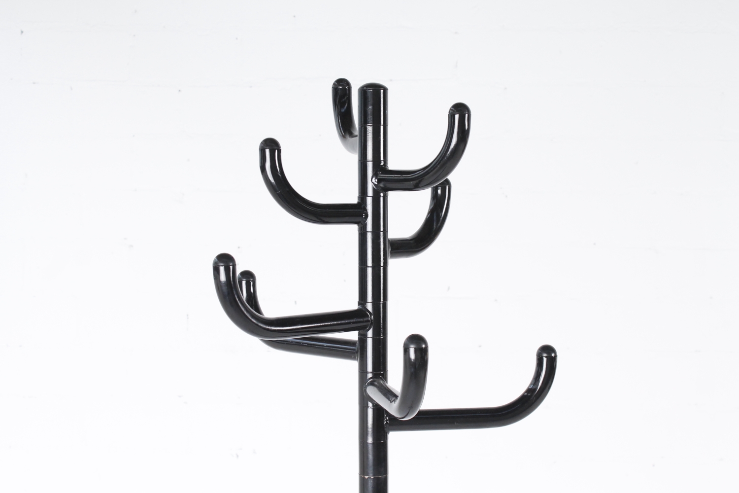 - BeschreibungPraktische Vintage Garderobe im Kaktuks-Look. Stännder und Haken sind aus schwarzem Kunststoff gefertigt, die einzelnen Haken lassen sich frei drehen.
