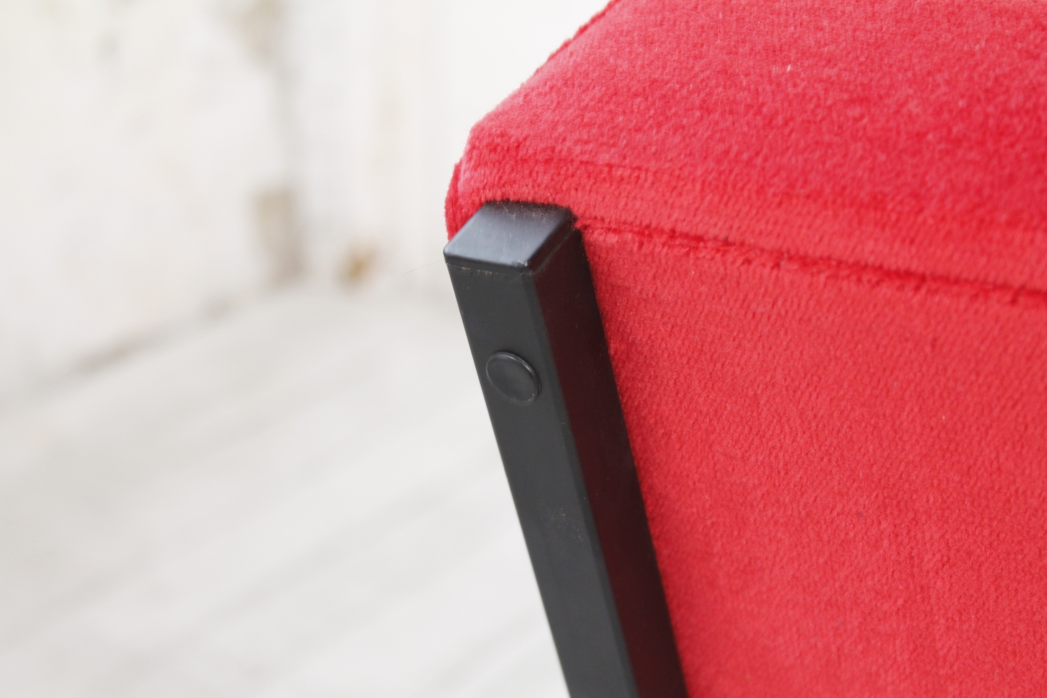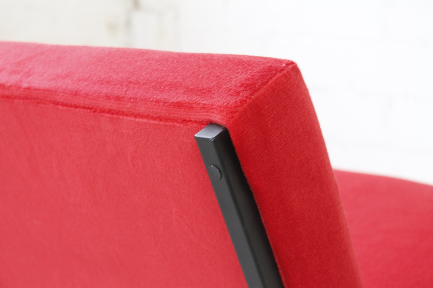 - ModellLounge Chair mit rotem Bezug.